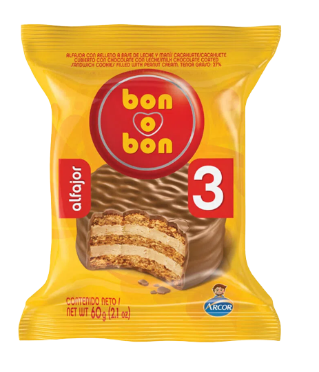 BON O BON alfajor chocolate triple x60g cantidad