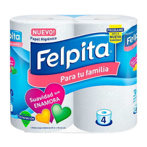 FELPITA papel higienico blanco hoja simple 30m x4Un.