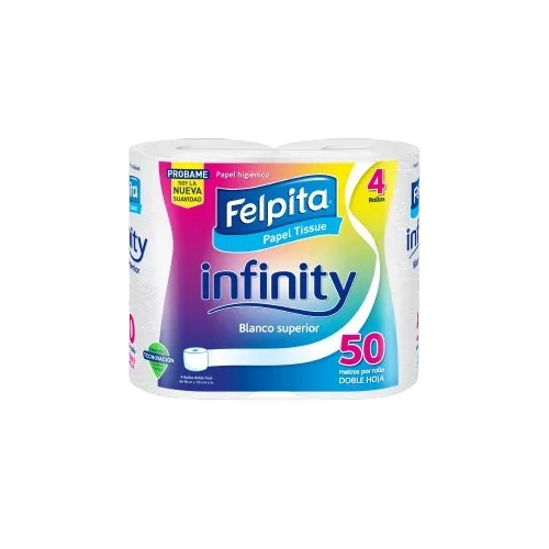 FELPITA papel higienico infinity doble hoja 50Mt x4Un.