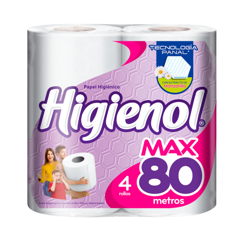HIGIENOL papel higienico max hoja simple 80m x4Un.
