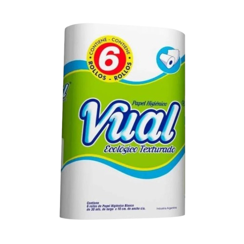 VUAL papel higienico blanco texturado h/s 30m x6Un.