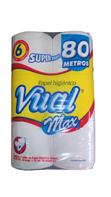 VUAL papel higienico max hoja simple 80m x6Un.