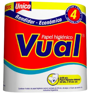 VUAL papel higienico natural hoja simple 50m x4Un.