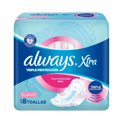 ALWAYS toalla xtra triple proteccion c/alas suave x8Un. cantidad